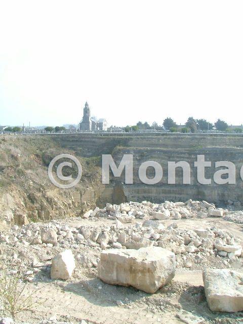 Looking acros the quarry generally to the ESE with local church made of Portland stone.