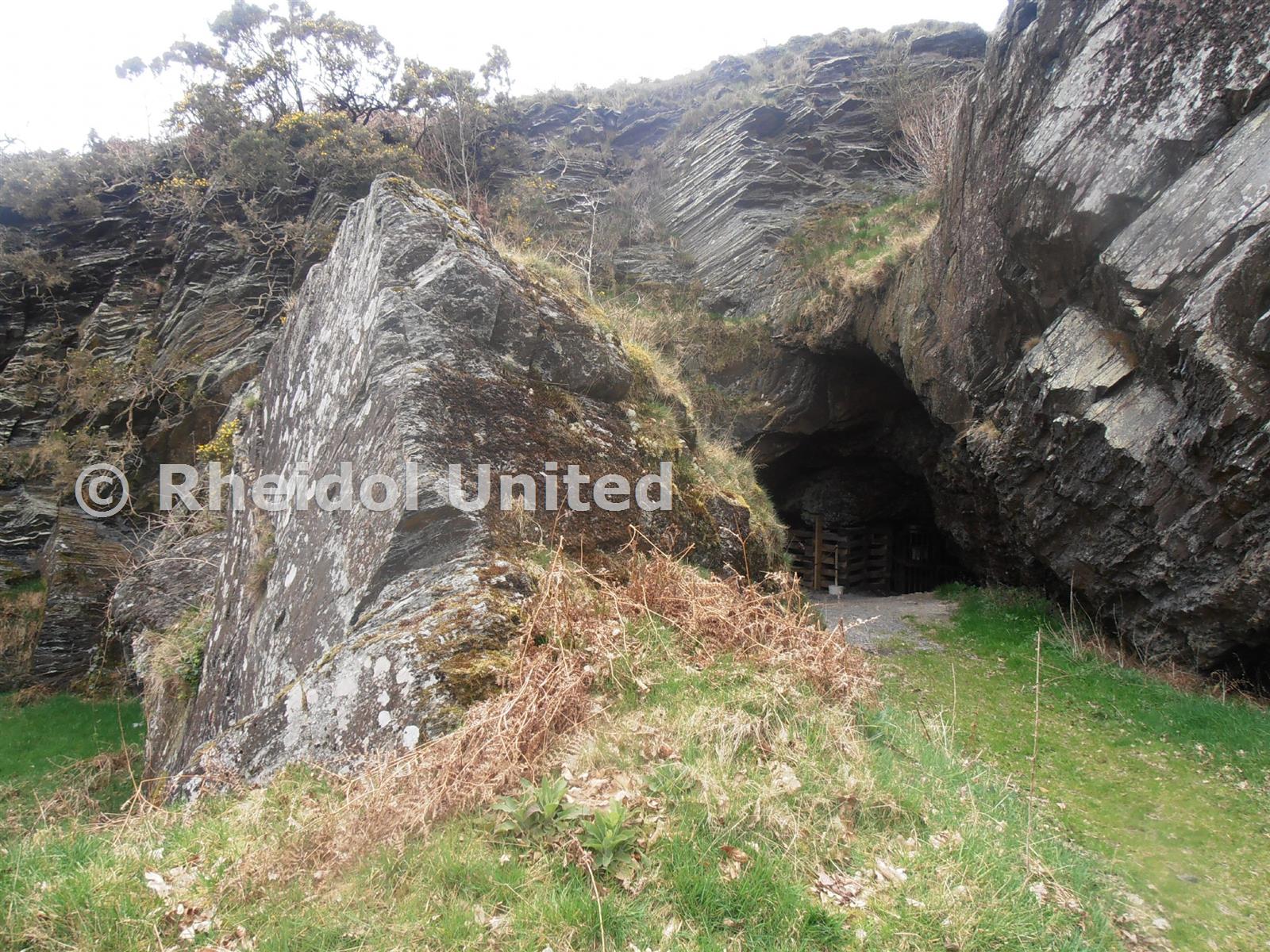 Ancient exit adit. Note tunnel going through the chunk of rock on the left.