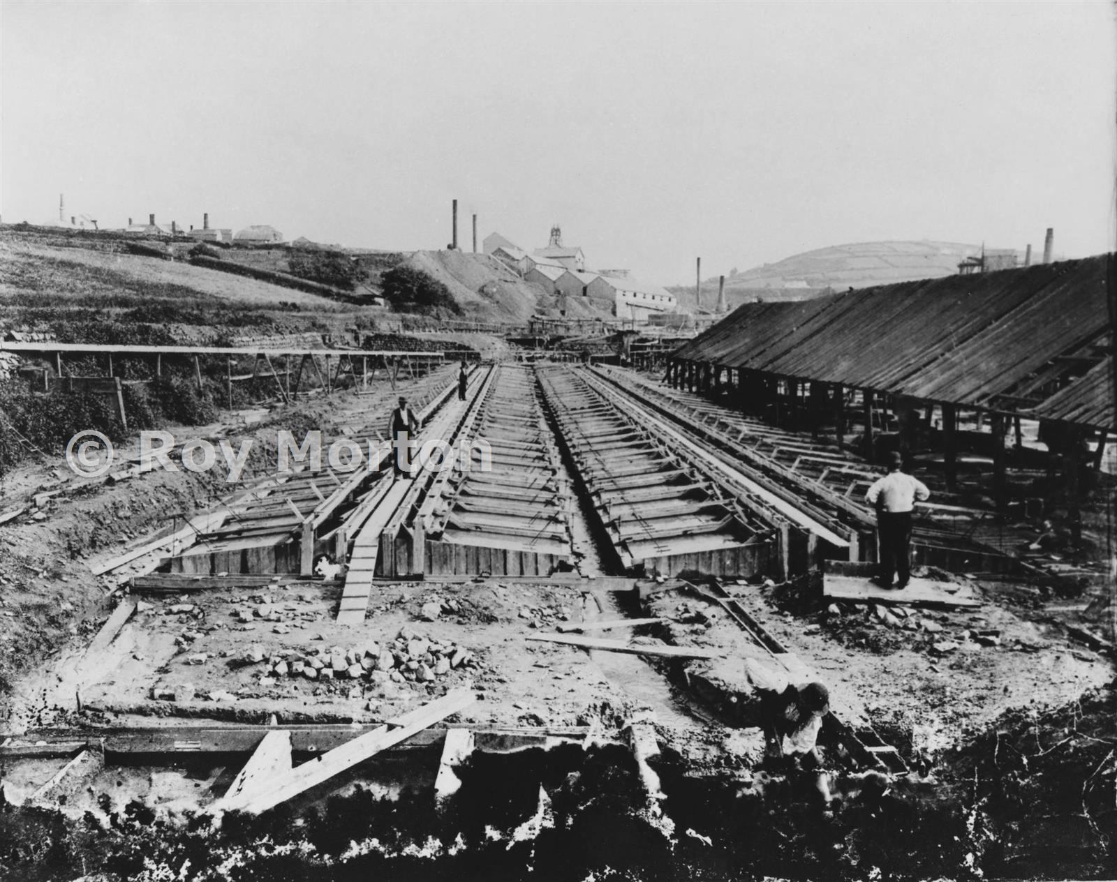 Carpenters constructing Rag Frames in the Tuckingmill Valley to catch the fines from the main dressing floors further upstream.