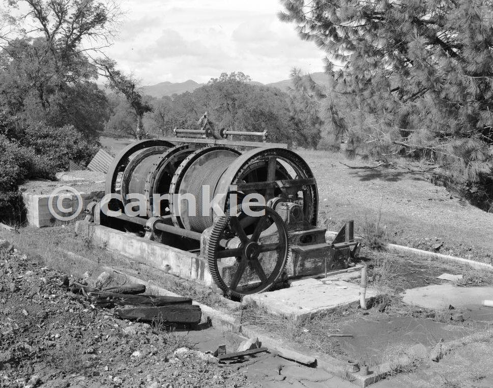 VIEW, LOOKING SOUTH, SHOWING DOUBLE-DRUM HOIST WORKS JUST EAST OF SHAFT. Courtesy Library of Congress, Prints & Photographs Division, HAER, Reproduction number HAER CAL,5-COP.V,3-3