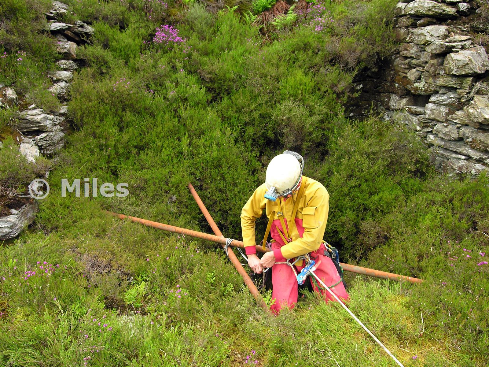 Drainrat begins the descent. Drws y Coed copper mine, Nantlle valley, north Wales.