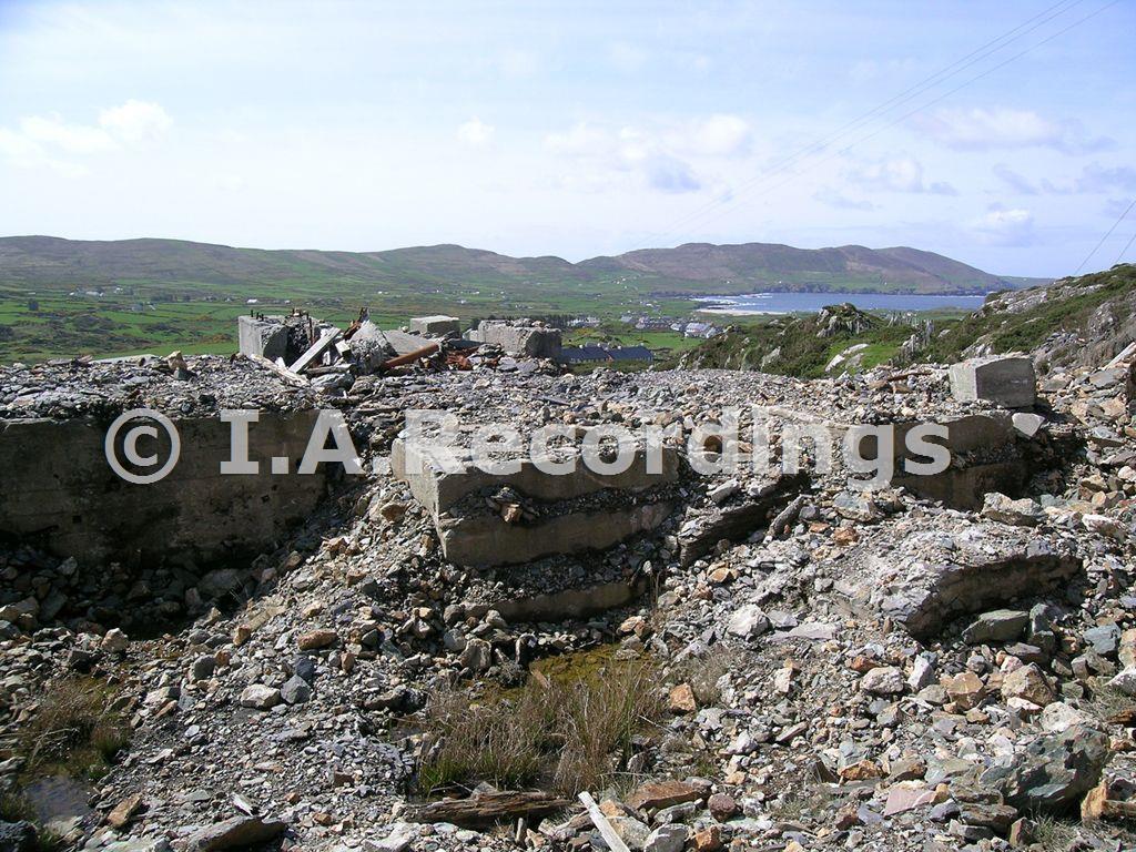 Remains of the dressing plant near the Mountain Mine main adit, with a view to Ballydonegan Bay in the background.