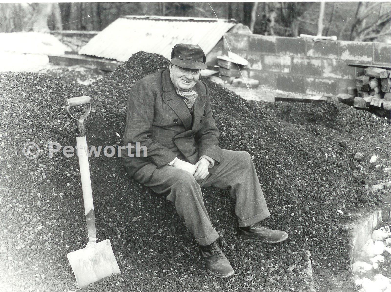 Jim Baker. Lime kiln loader c.1951. The kilns were kept charged from the top, fuel and chalk being loaded in succession while the burnt or quick lime was drawn out from the bottom.