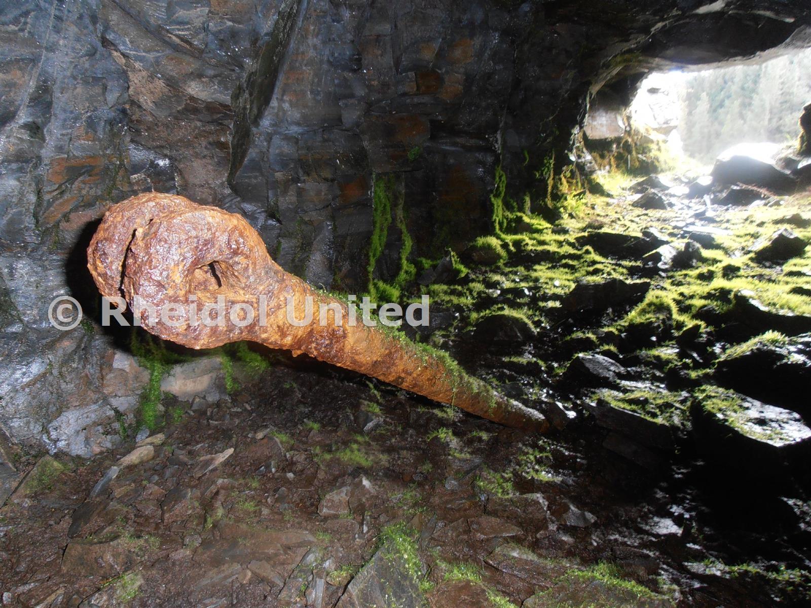 Cyfartha Shallow adit. Flatrod inside the partly blocked portal.