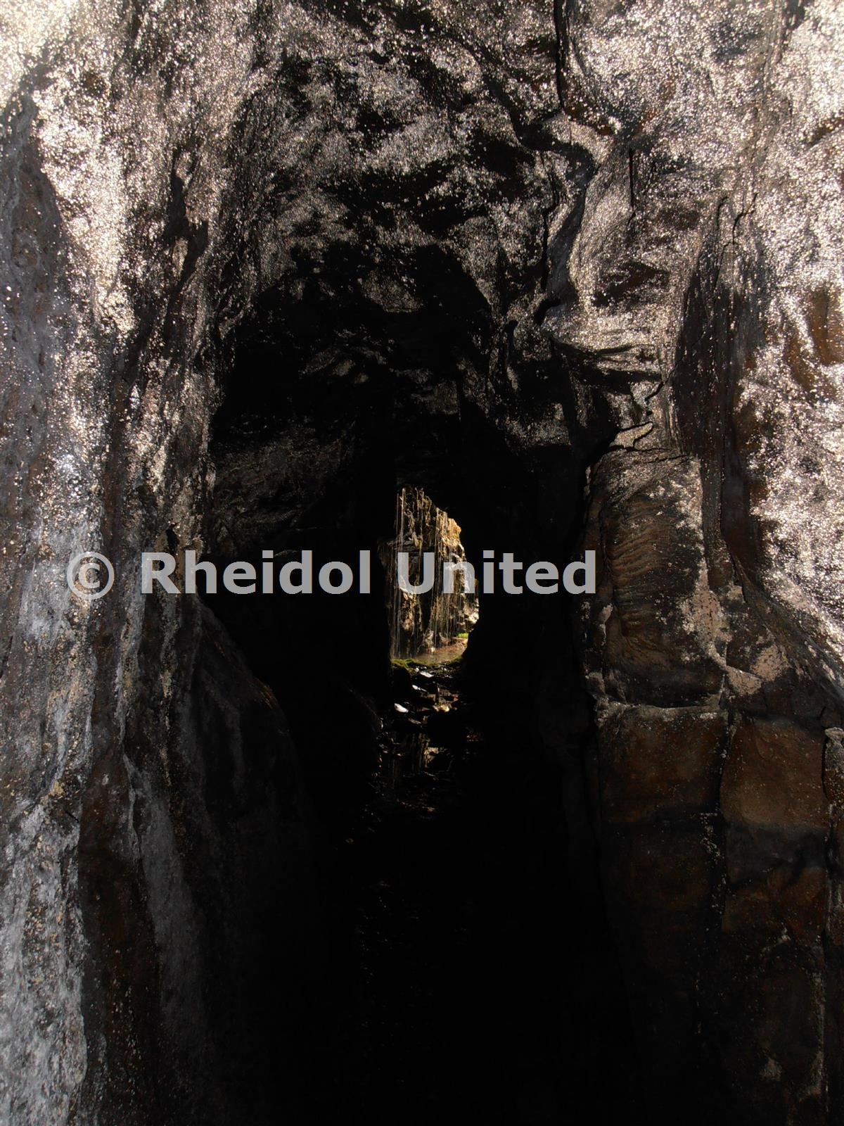 Cyfartha Roman adit. Once inside a more recent level branches off to a winze whilst the main coffin-level continues forwards towards the Esgairgaled lode.