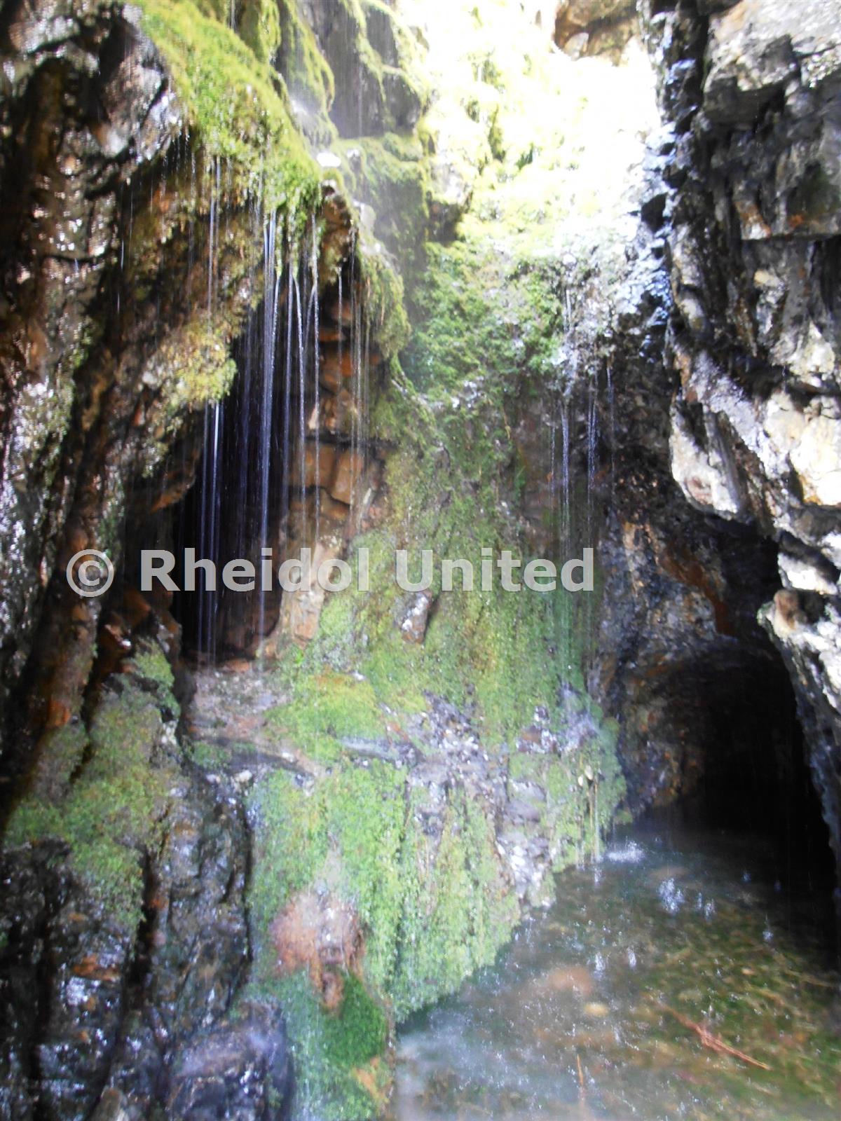 Inside the Cyfartha Cutting. The Roman / coffin-level leads off to the left half way up, and right comes to an end around the corner. Above is the former Dyfngwm leat.