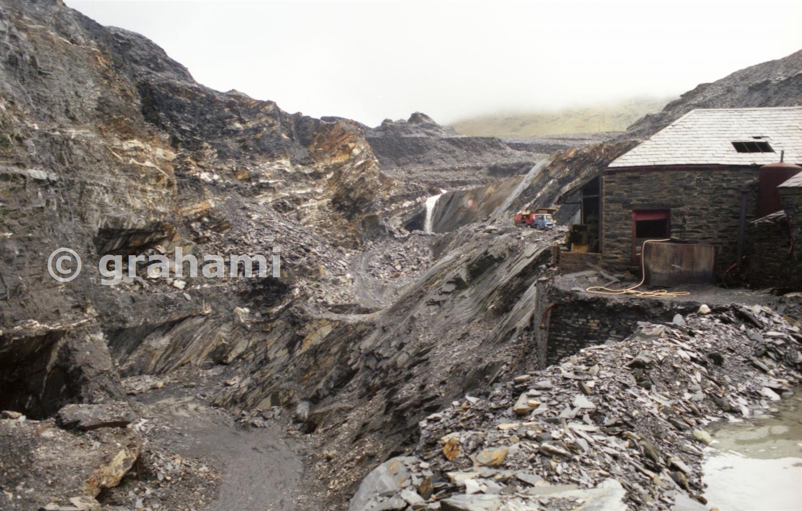 The original H-I-K incline wound trucks from H, I and K floors to G floor, where an inclined water balance and vertical water balance lifted them to DE and the Vertical Balance Floor (Bonc Siafft) respectively. In the 1920's the vertical balance was smashed and then the incline balance superceded by extending the beds of the HIK incline up to DE. In 1939 the quarry face above the incline collapsed dropping the "10,000 ton boulder" onto the incline which took the rest of the war to tunnel through. You can see the top edge of the boulder on the bottom left, resting on a slab wall. At that point the working floor you can see is about 20-30 feet above the actual G floor.