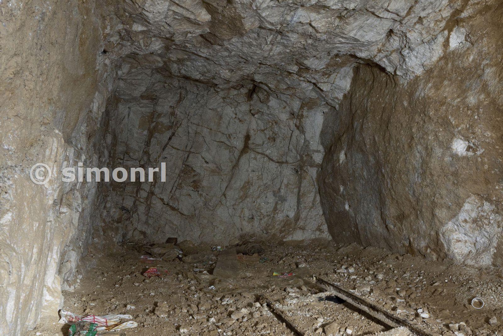 End of the line, much evidence of 1970s / early 1980s food wrappers from the last years of the mine's operation. Hendre Spar Mine October 2011