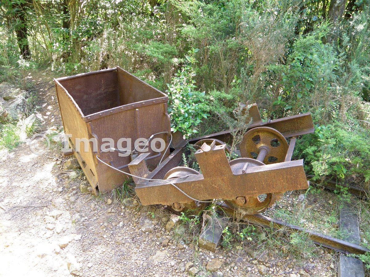 An end tipper truck adjacent to the tramway near Butler's Incline. Teh tub and bogey are padlocked together for obvious reasons.