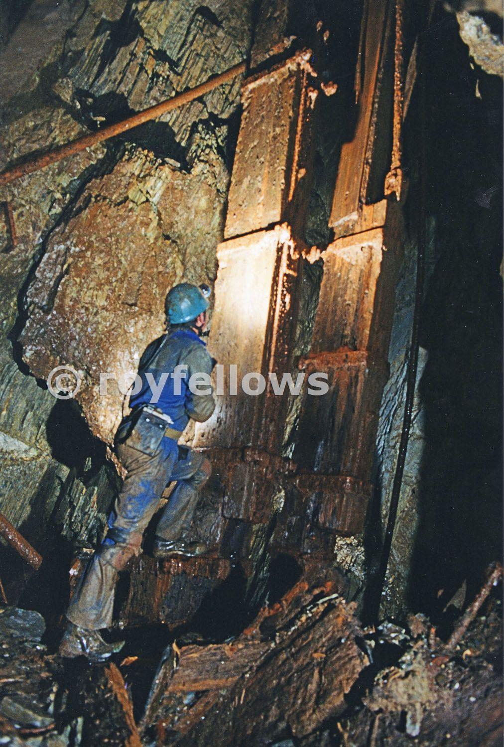 In the Frogoch engine shaft there are several pump rods. It appears that these must have failed regularly and been replaced by new ones, the old just moved to one side. One has been lashed up as a rudimentary form of repair.