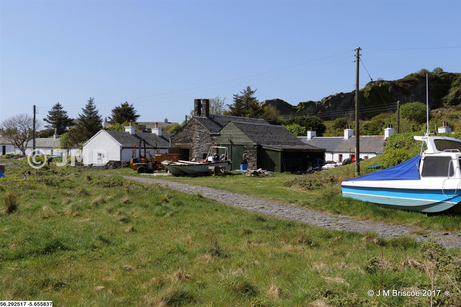 Engine shed, Easdale - NM 73826 17102 - There was a tramway at the Easdale slate quarries and there were said to be a number of locomotives to pull to the wagons. This shed has rails running into both sets of doors on the 2nd Edition OS Map but the track does not go to the building on the 1st Edition OS Map - could it have been a stable then (that could fit with the doorway in the roof as often used for loading animal feed?).