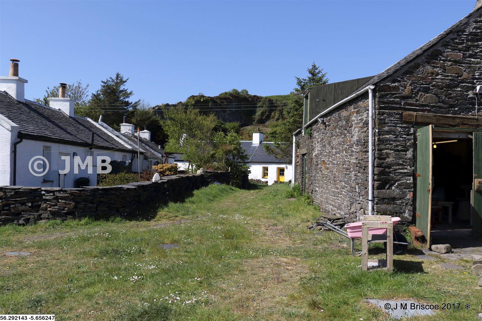 Engine shed, Easdale - NM 73826 17102 - There was a tramway at the Easdale slate quarries and there were said to be a number of locomotives to pull to the wagons. This shed has rails running into both sets of doors on the 2nd Edition OS Map but the track does not go to the building on the 1st Edition OS Map - could it have been a stable then (that could fit with the doorway in the roof as often used for loading animal feed?).