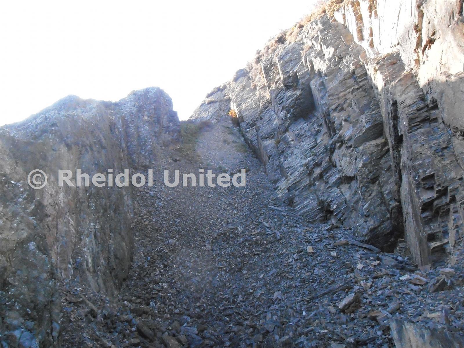 The open cuts at the top of the ravine, under which the coffin-level and Murlwyd adit were driven.