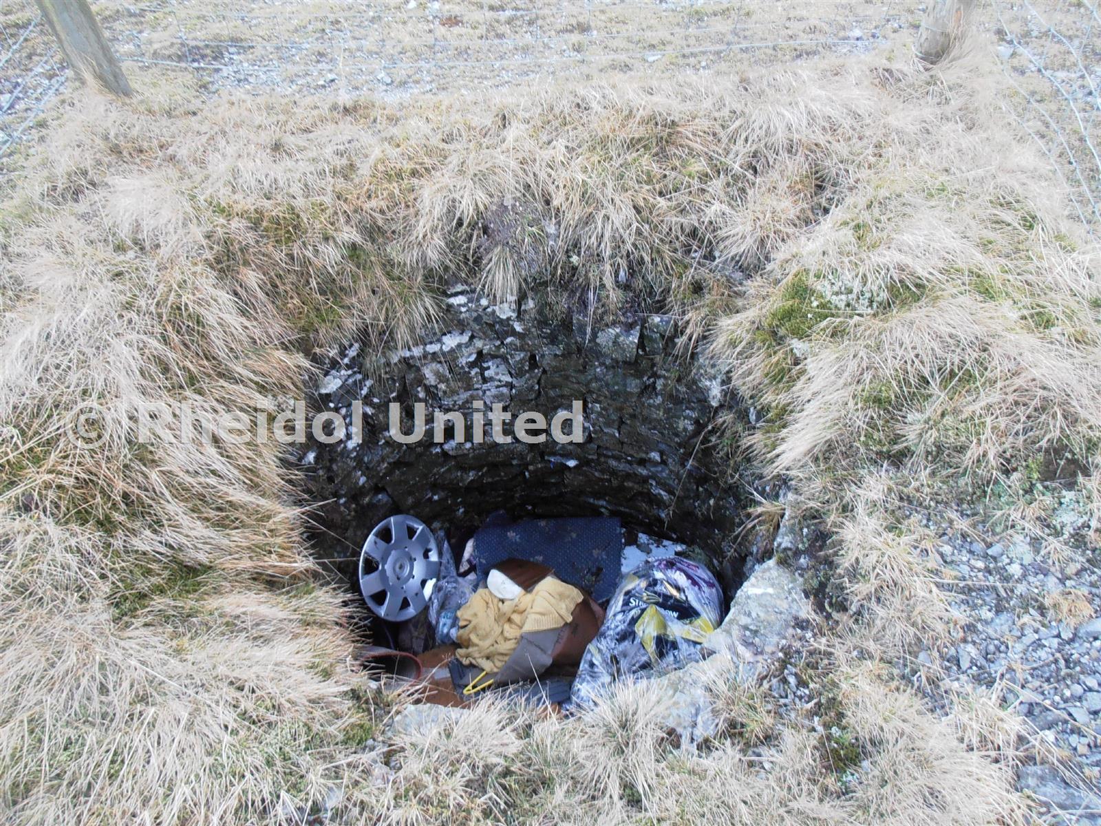 Filled with rubbish footway shaft near the lane West of Whimsey Shaft