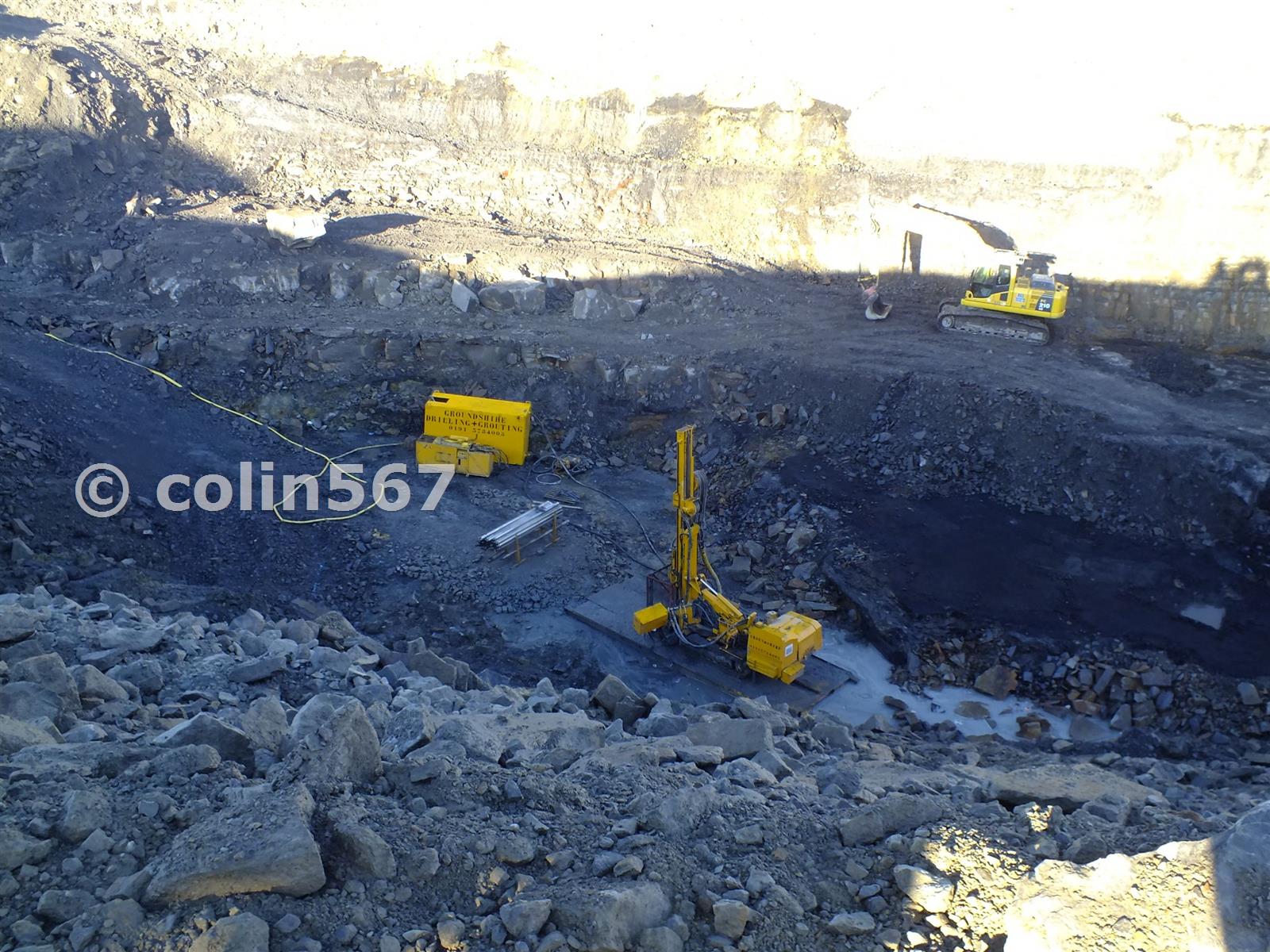 A fault runs through this section from left to right, between the excavator and rigg; bringing the base of the High Main seam down from above the excavator in the far wall to the right of the rigg in the foreground.