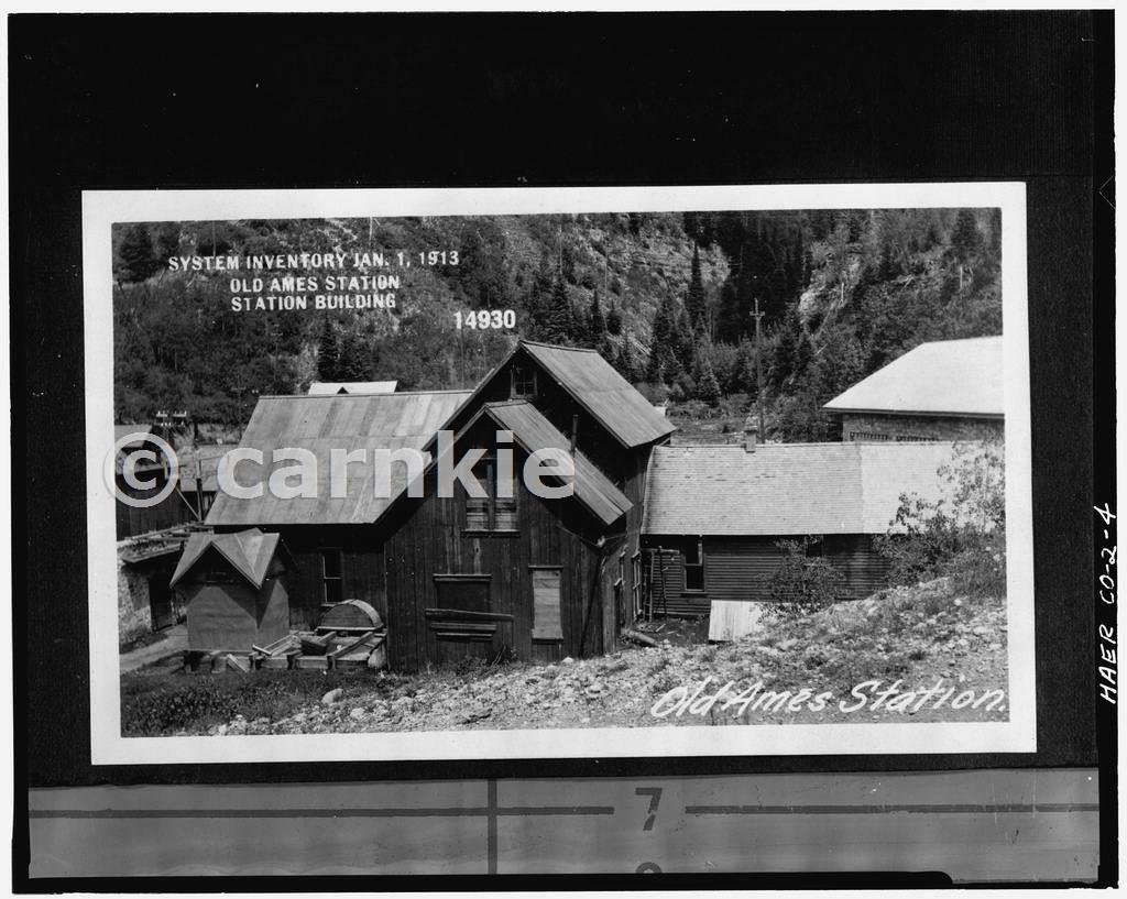 EXTERIOR VIEW (C.1913) OF 1895 POWER HOUSE, ROOF OF 1905 POWER HOUSE IS VISIBLE IN RIGHT SIDE OF PHOTO. Courtesy Library of Congress, Prints & Photographs Division, HAER, Reproduction number HAER COLO,57-AMES.V,2A-4