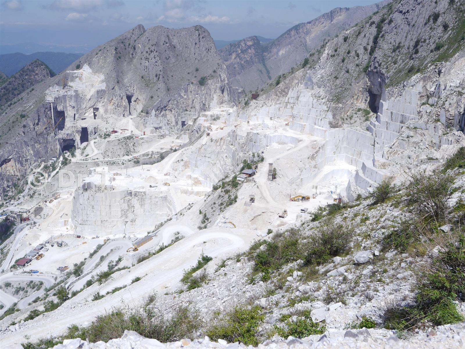 View across, with the major workings of Cava Carbonera left and centre, Fior de Chiara excavations in the background, various other quarries also visible
