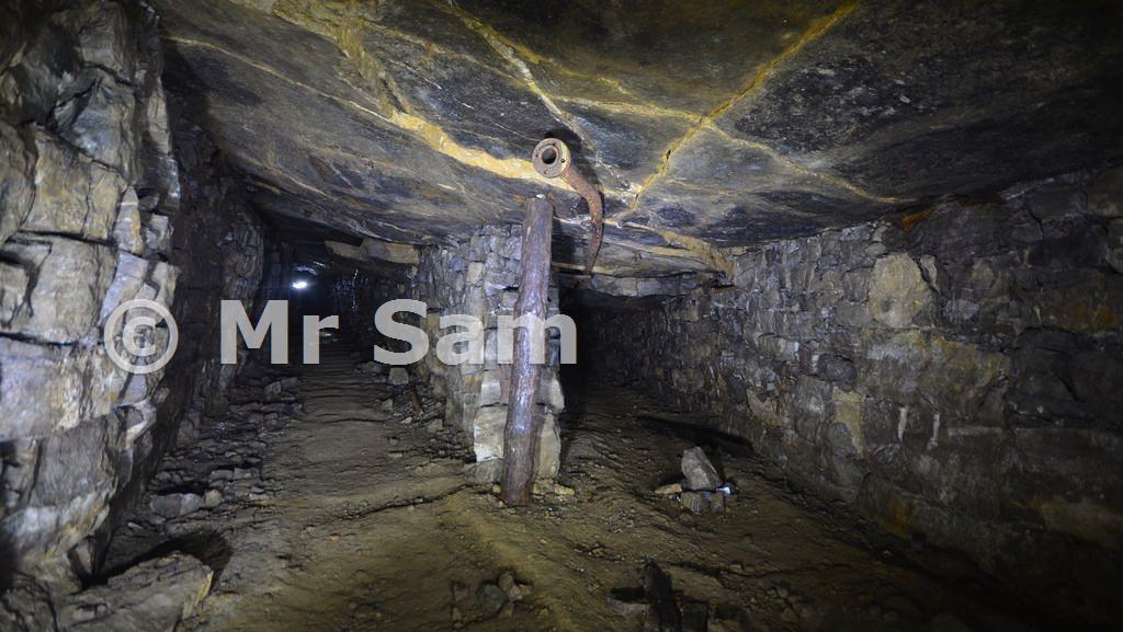 30/08/2016 a fork stuck in the road, you can make out faults in the rock above and a fellow explorers cap lamp in the distance