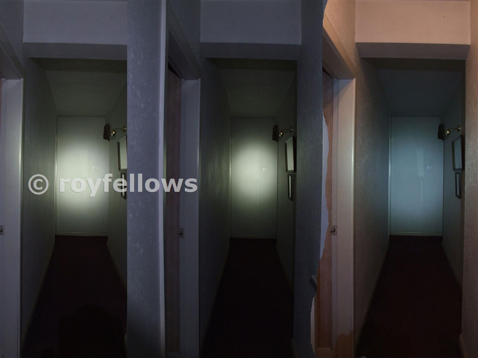 Left to right, EcoStar, X1000, Dragon all at walk mode about 200 lumens, distance 7 metres.