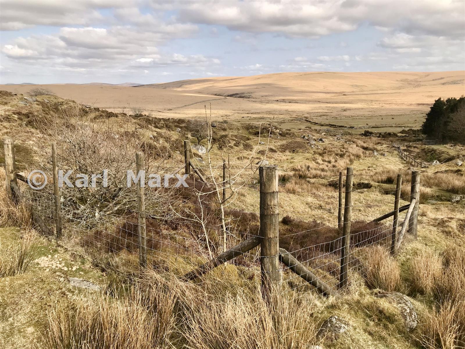 A fenced (but sadly choked) shaft within an ancient open work at whiteworks. Shafts were presumably timber collared, and when these rotted the resulting collapse formed the subsidence craters we see today. Note, the hilly area here appears to be the most ancient area of the mine; likely dating well before the first recorded instances of the mine. This view looks towards the more recent underground workings to the SE and over the Foxtor Mires to stream world at the head of the river Swincombe.
