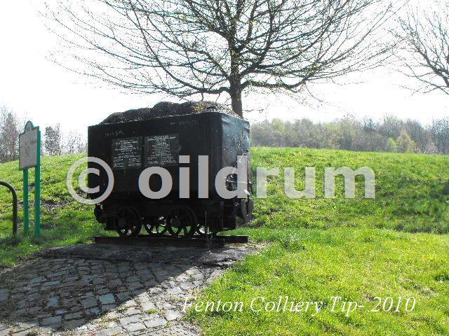 Coal tub with plaques to commemorate the Fenton Tip Reclamation Scheme in the 1970's