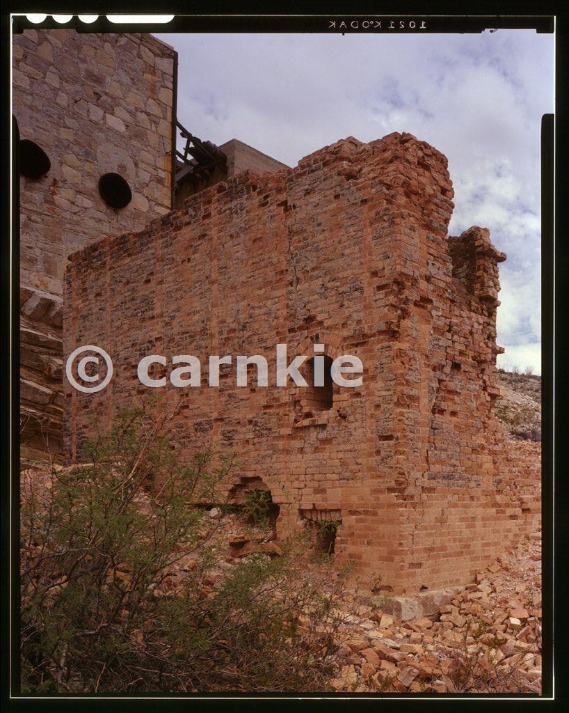 CLOSE-IN VIEW OF SCOTT FURNACE SHOWING FIREBOX DOOR AND ASH PIT DOOR BELOW, LOOKING WEST, NORTHWEST. Courtesy Library of Congress, Prints & Photographs Division, HAER Reproduction number HAER TX,22-MARMOU,1-59