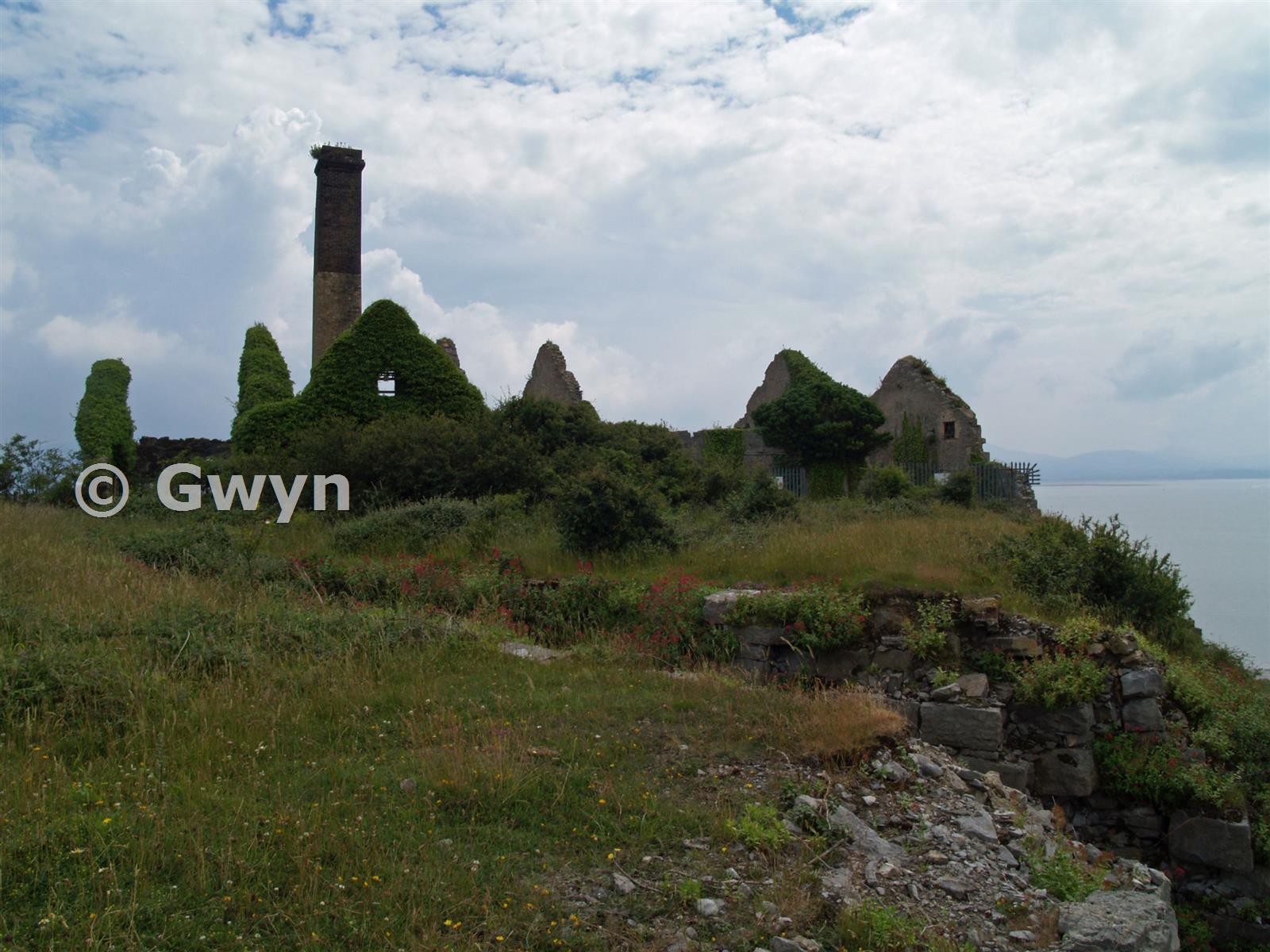 View, from NW., of the buildings which housed the crushing plant. The cutting in the foreground was the route to the foreshore waste tips.