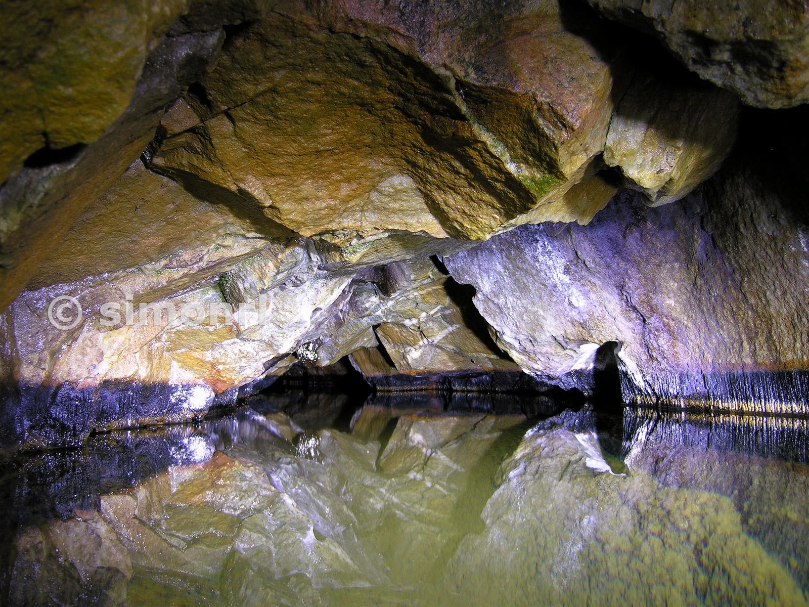 Higher up above the valley we found another adit, damned off and flooded to within 6 to 12 inches of the tunnel roof - Talysarn copper mine, Nantlle valley.
