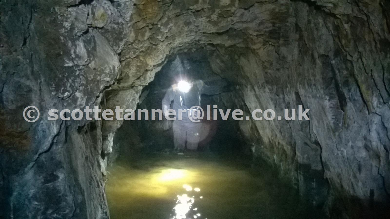 The entrance is flooded with knee height water for 20 - 30 feet where it clears up.