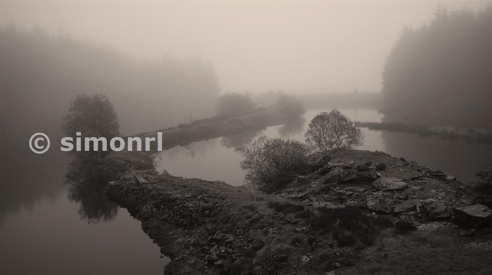 A moody view of the flooded pit. Rhiwbach slate mine. May 2012