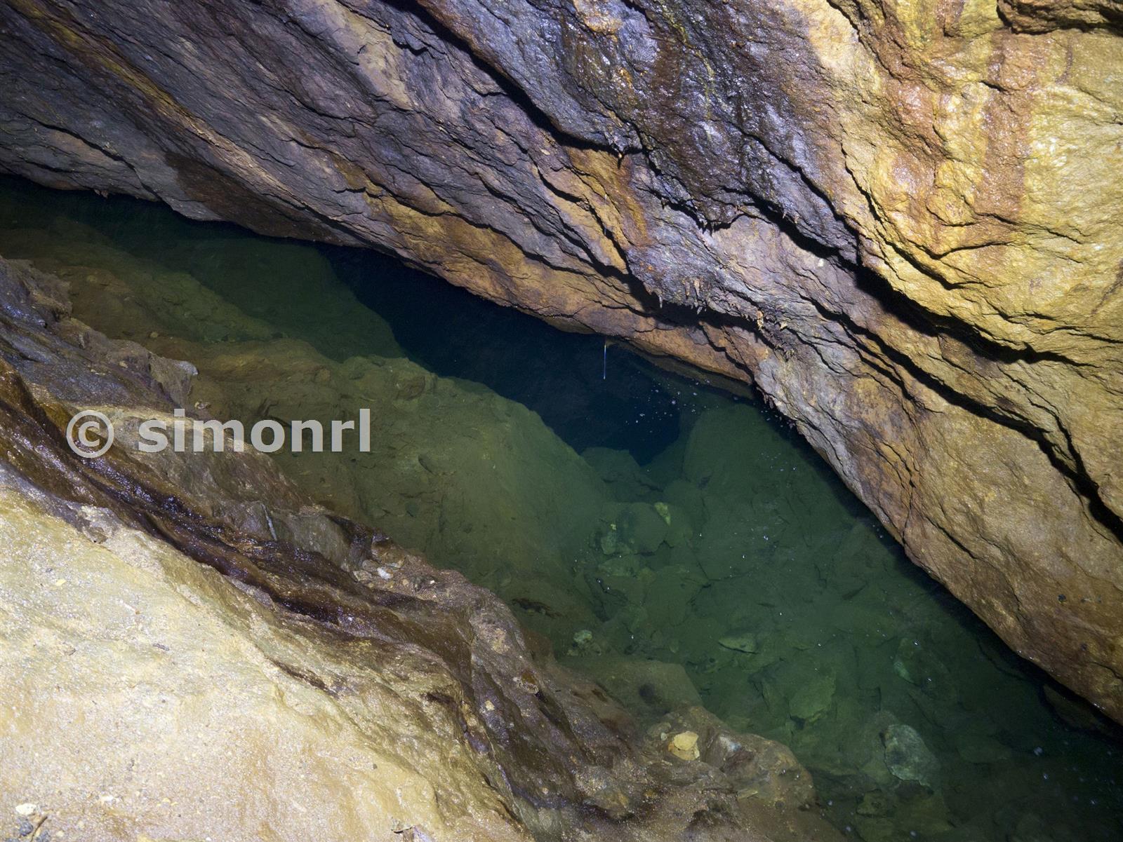 Close-up of flooded stope - Bick suggests two floors (flooded) below Llwyndu Copper Mine August 2013