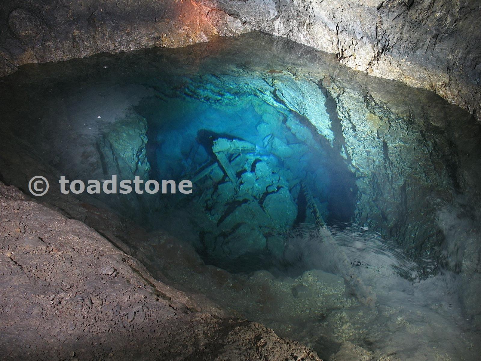 Rubble fill in flooded trial working.