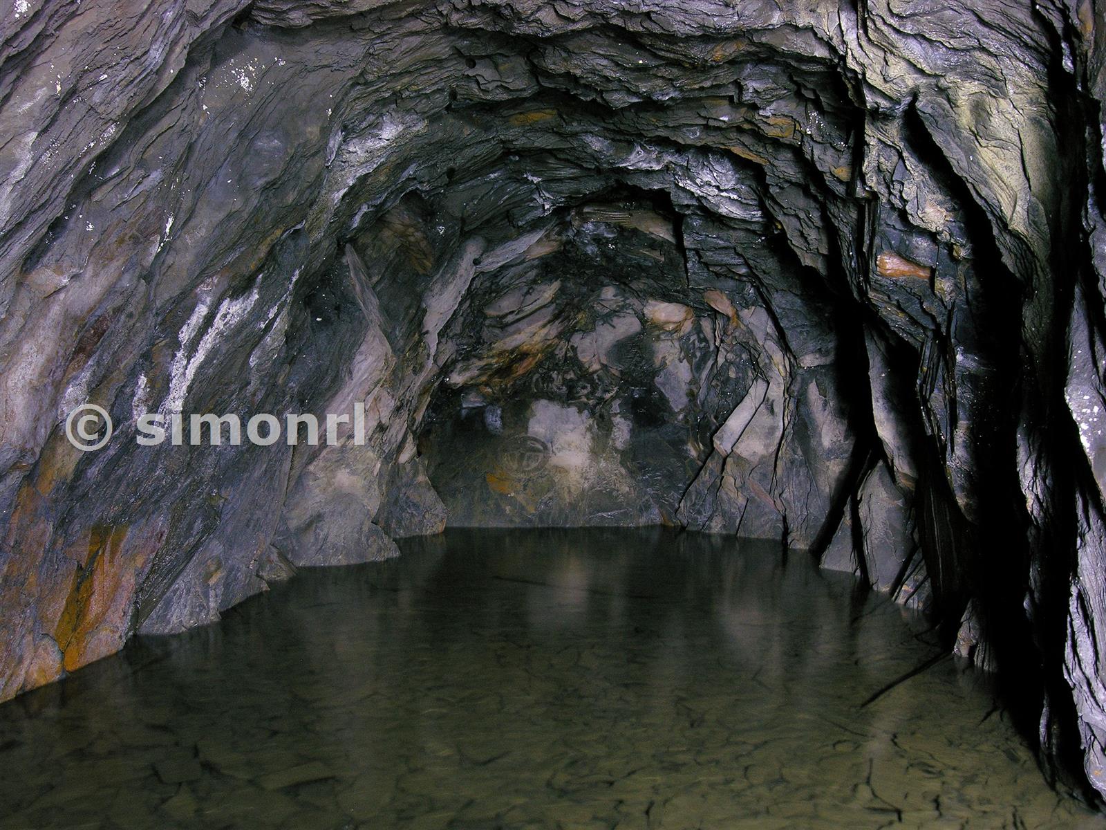 This photograph is taken at the end of the second right hand fork offthe floor 4 back vein adit. This level runs dead straight for 100 yards or so, with two right hand branches. This is the 2nd branch and is only a few yards long. See Cwmorthin Slate Quarry, J G Isherwood, page 66 for the relevant map.