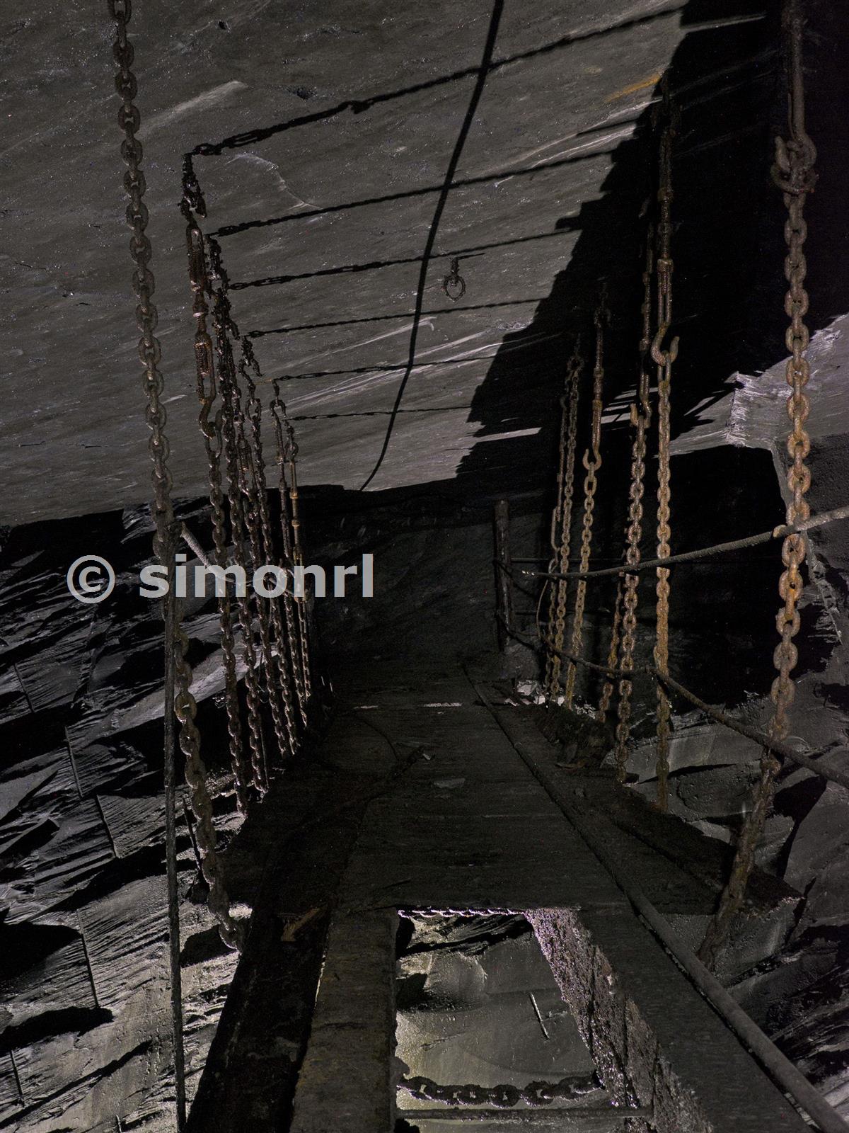 View along the floor 4 bridge Moel Fferna Slate Mine May 2013