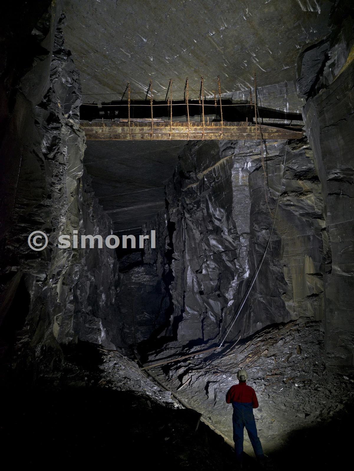 Floor 4 bridge viewed from floor 3 Moel Fferna Slate Mine May 2013