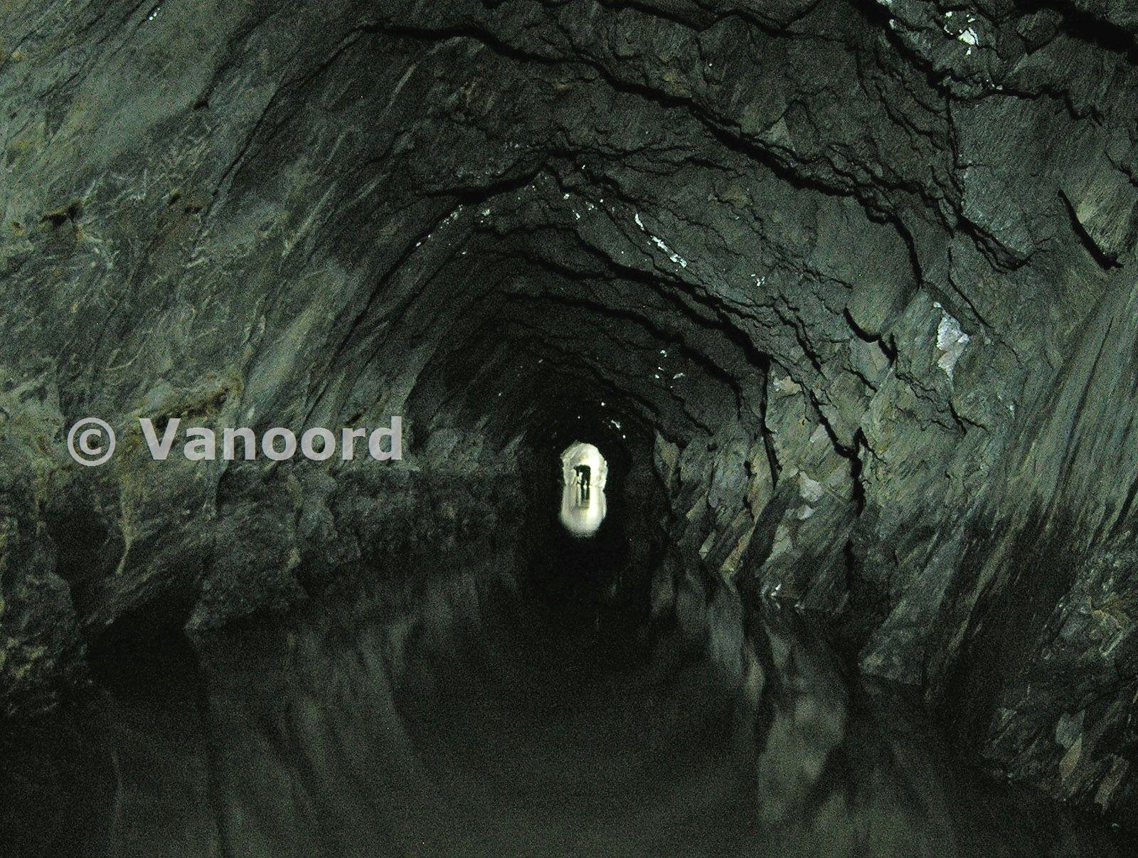 Looking along the blind tunnel accessed via the old Floor 4 North adit - in the distance, SimonRL sets up to take a photo. This fork of the tunnel leads to two dead ends, while the other (originally the access for Floor 4 back vein and old vein) is blocked by a collapse.
