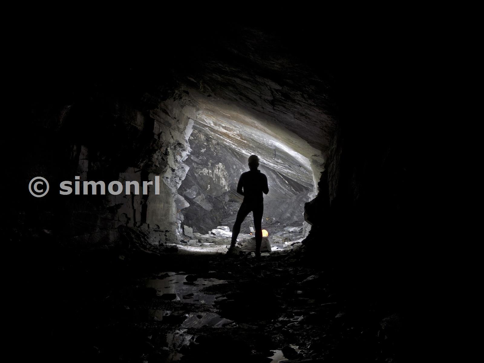 Looking along floor 5 backs towards 4th flooded chamber crossing. Diffwys Slate Mine July 2012
