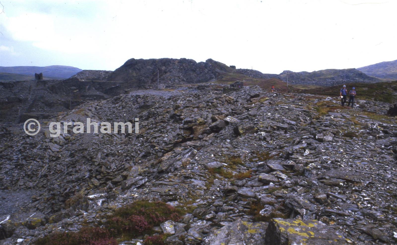 On the old Floor 9 tip, looking east towards the Incline in Pen Ffridd. Some of the ruins about date back to the 1850s and 60s.