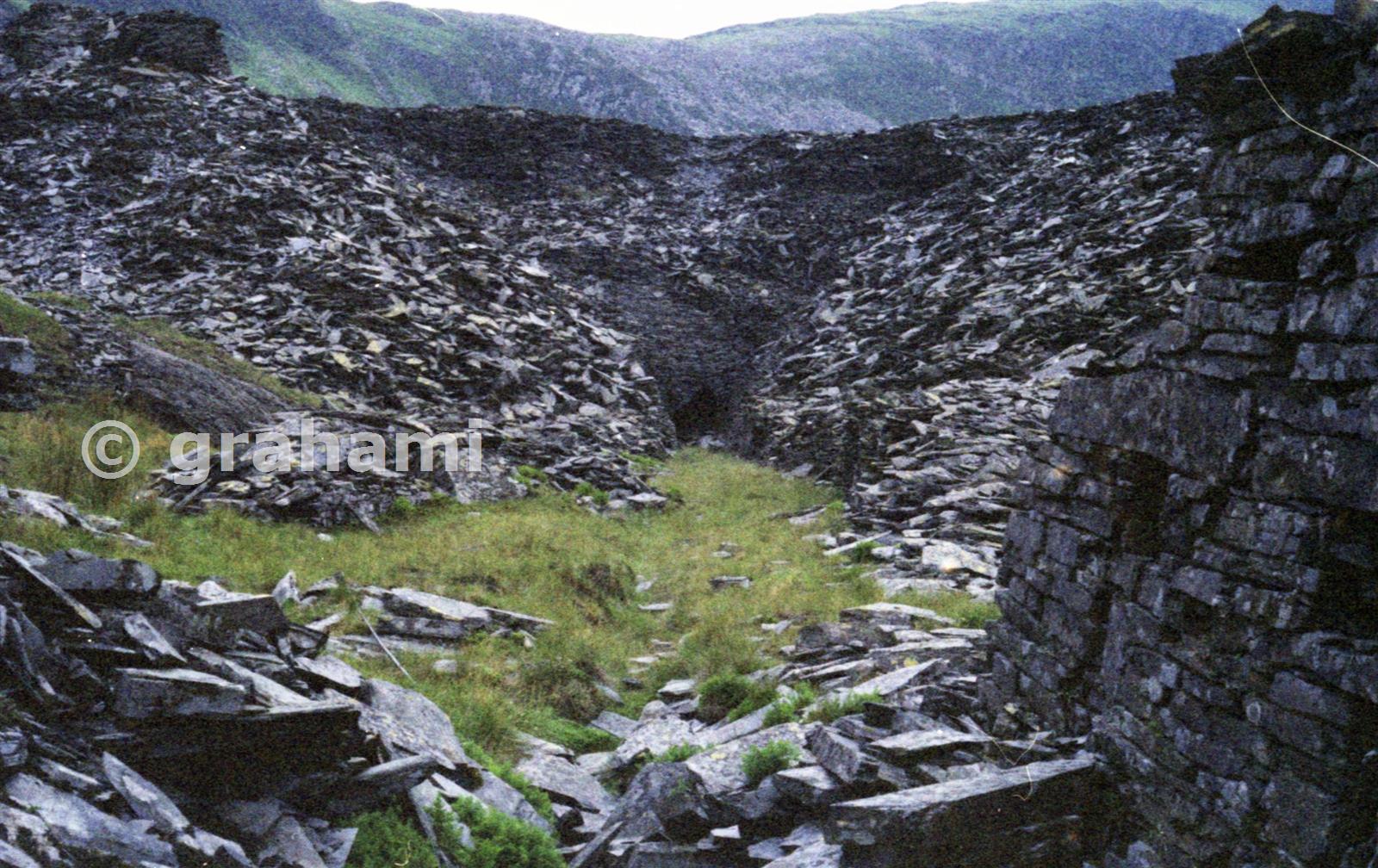 View taken from the old floor 9 drumhouse looking along the tramway to the tunnel under the floor 10 tip - no I didn''t venture in it! Very timid in those dyas - and it was obviously in a state of collapse.