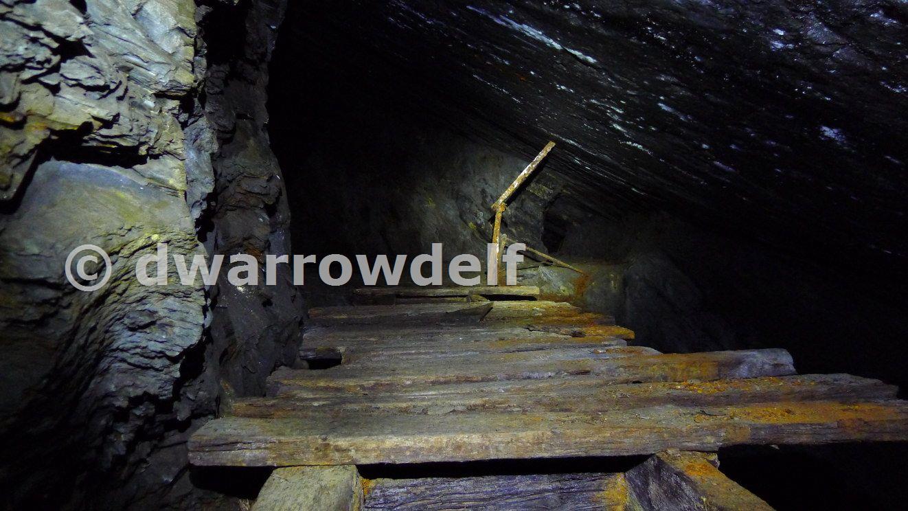 Looking from the BVI side towards the Westerly workings. The chamber containing the base of the manway is on the other side of this bridge