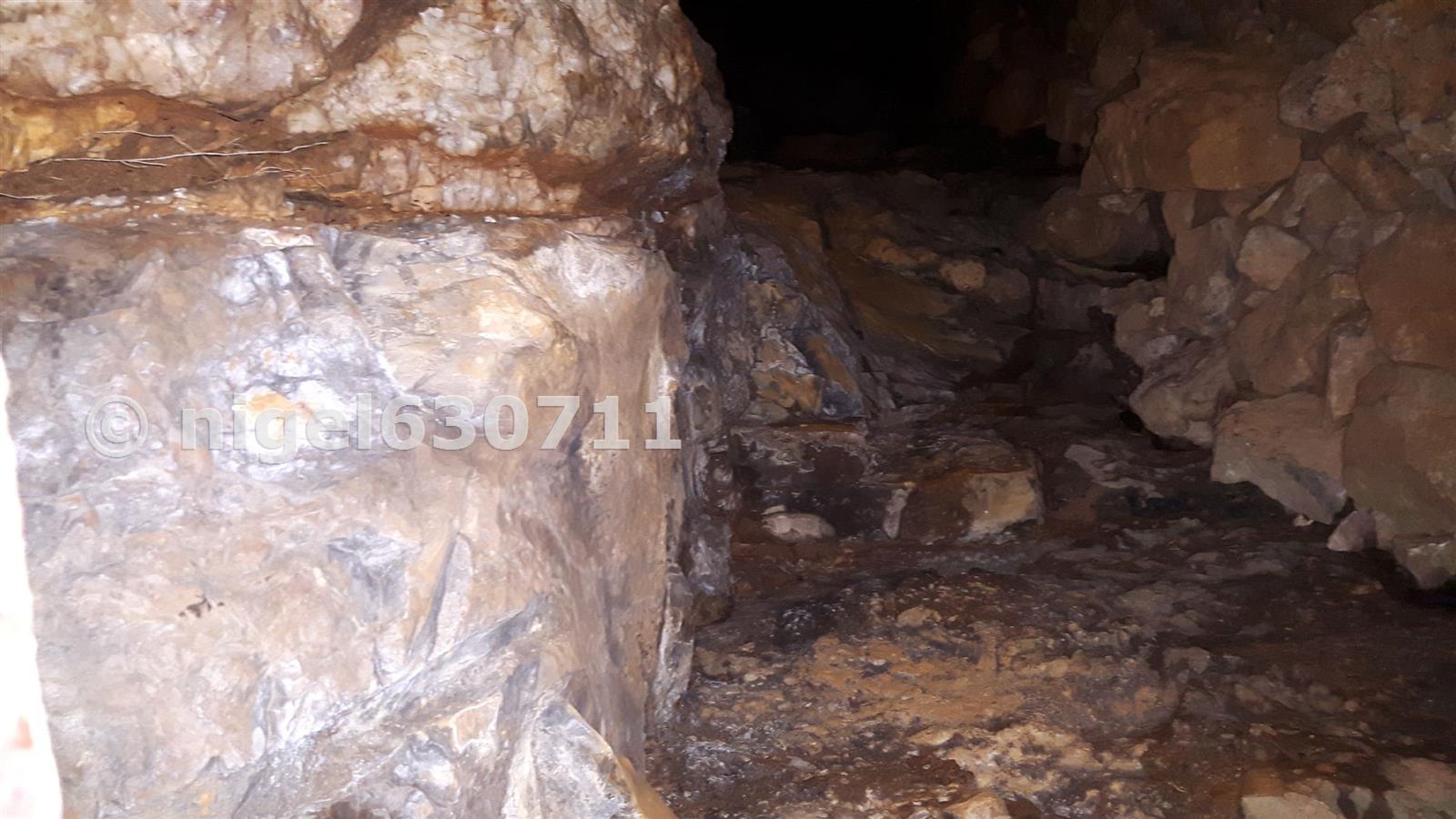 Photo should be turned 90'' to right Flourspar vein in the roof of an audit entrance to the Mandale Mine, the audit follows the vein in the search for productive lead