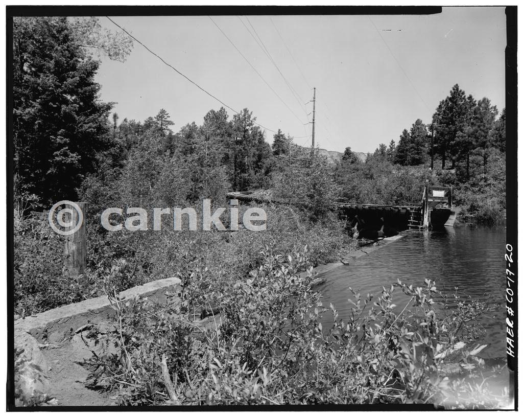 SIDE VIEW; FLUME EMPTYING INTO FOREBAY LAKE--1980 Courtesy Library of Congress, Prints & Photographs Division, HAER Reproduction number HAER COLO,33-TAC.V,3-20