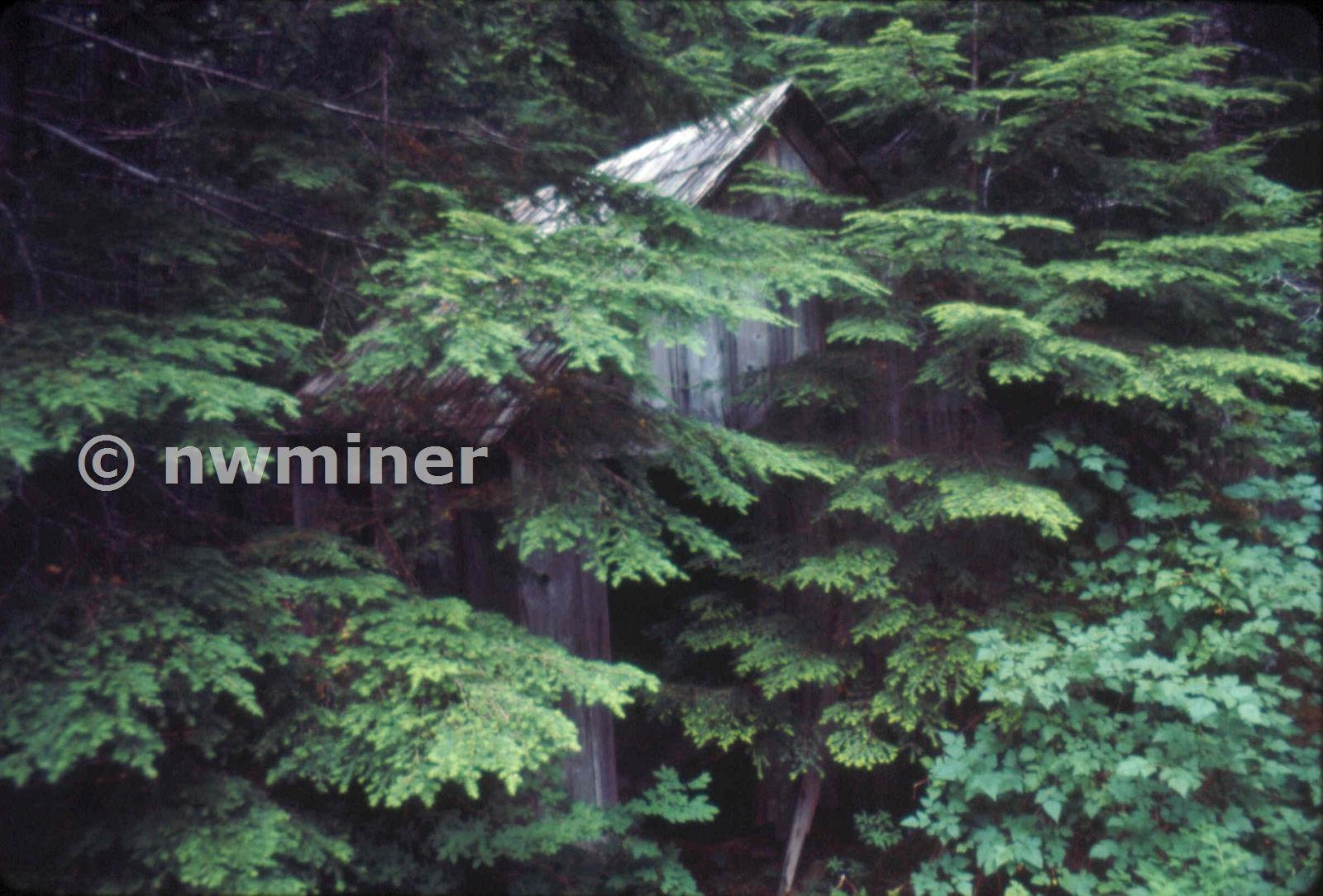 Old building in main mine camp, below Goat Lake. Photo taken 1974.