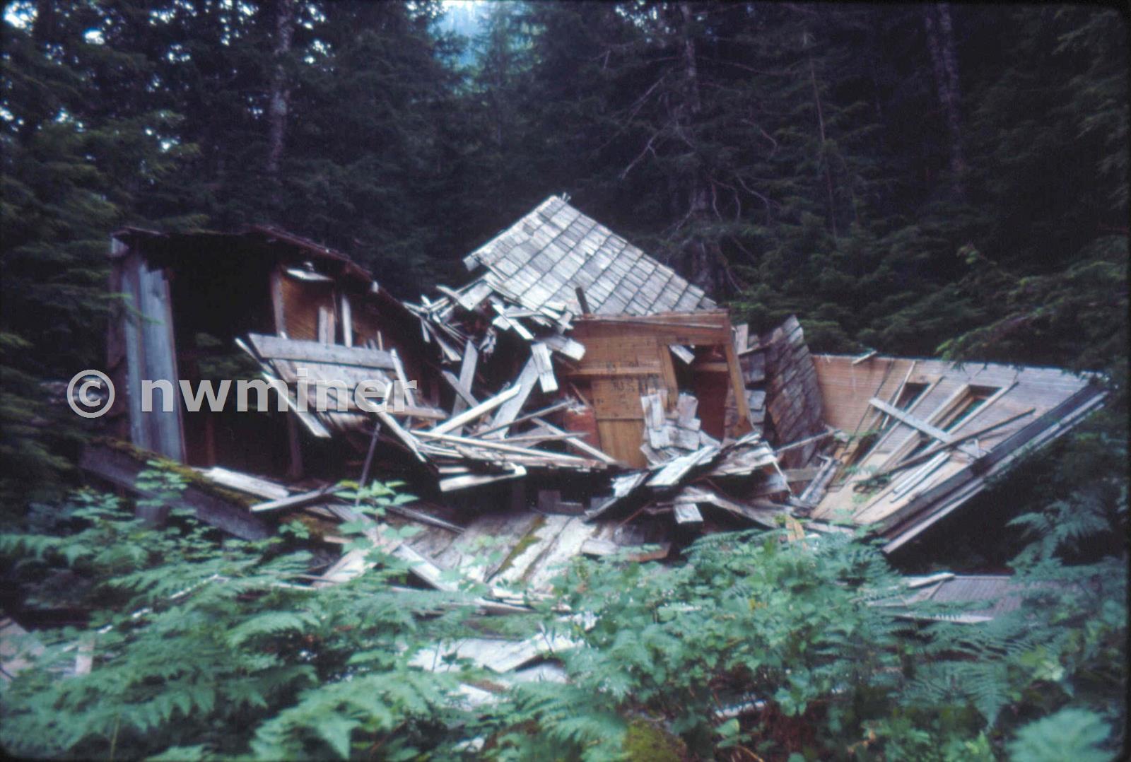 Old building ruins in main mine camp, below Goat Lake. Photo taken 1974.