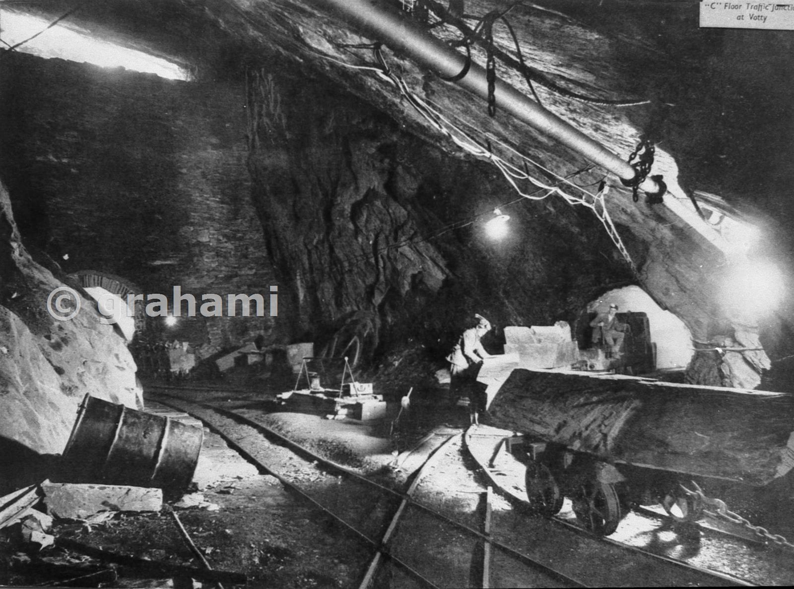 One of the classic "Caban" shots. Here the view is on C Floor at the foot of the Tuxford Incline (through the arch on the right)behind the photographer is the entry to the New Robey, while the train of blocks is coming from the Old Robey towards the mills.