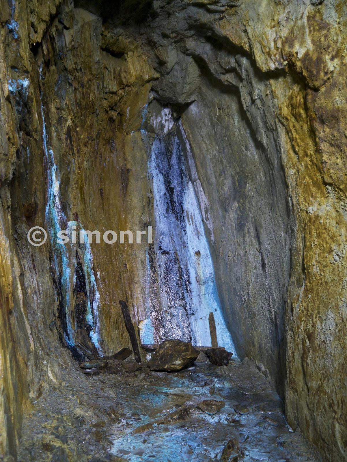 Forehead, copper staining Drws y Coed Copper Mine September 2013