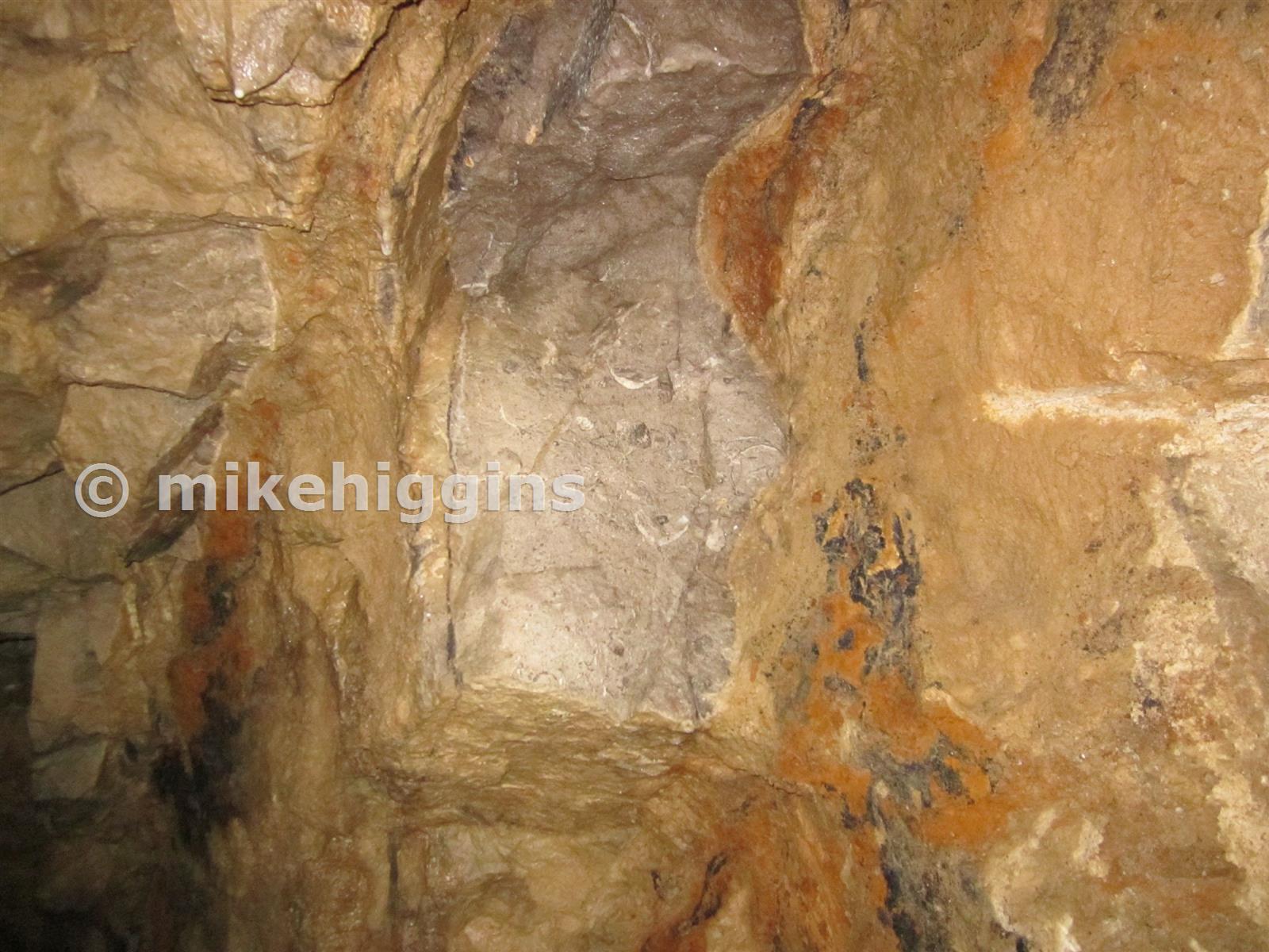 A small section of limestone in the fluorspar section of the mine exhibiting fossils