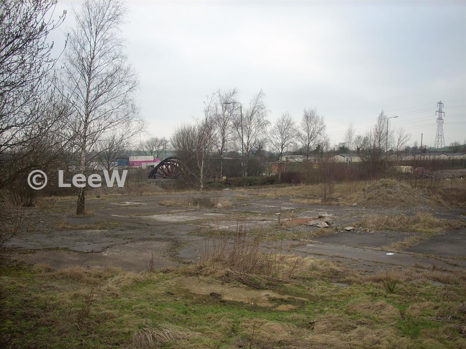 Remains of some building foundations and Winding Wheel Memorial in the background (Mar 2011)