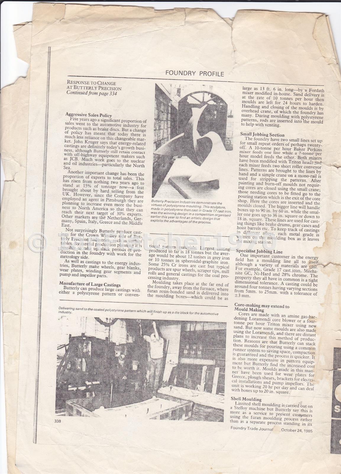 Article from 'Foundry Trade Journal' with profile on Butterley Foundry which closed in 1986