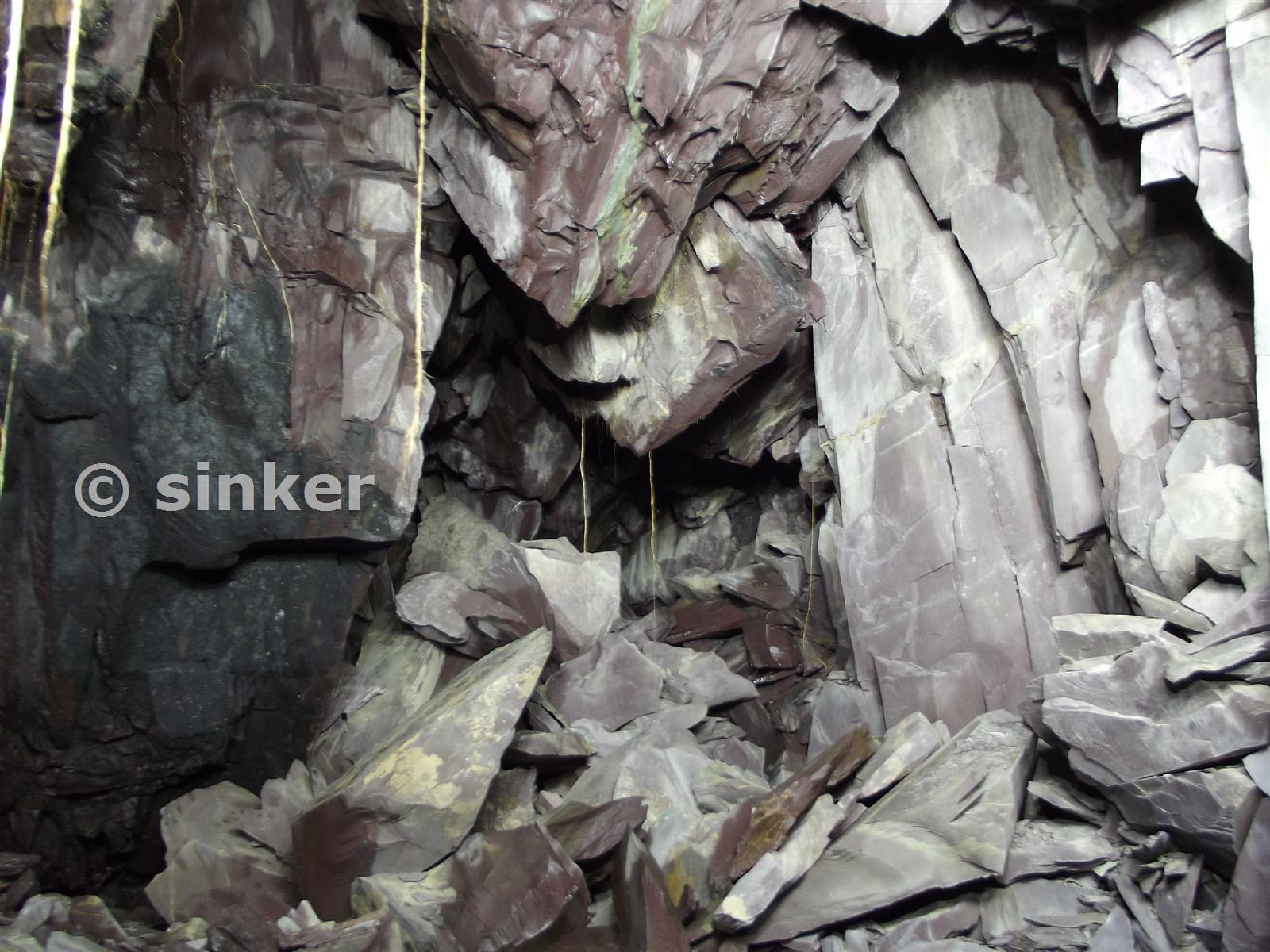 The bed of the slate here is almost vertical and these half tonne blocks are on their way down...